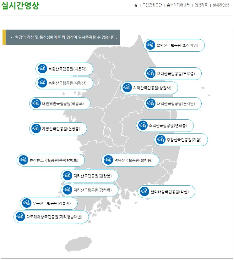 🌄 주요 국립공원의 실시간 CCTV 관찰 지점