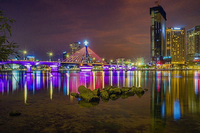 다낭의 랜드마크인 용다리는 매주 토요일과 일요일 밤 9시, 불과 물을 내뿜는 쇼가 진행됩니다. 야경이 아름다우며 강변 산책을 하면서 여유로운 시간을 보내기 좋습니다.
