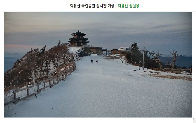 일부 지역 CCTV 사이트에서도 덕유산의 실시간 정보를 제공하는 경우가 있습니다. 예를 들어, 덕유산 설천봉이나 특정 등산로를 별도로 확인할 수 있는 사이트도 있으니 참고하세요.
