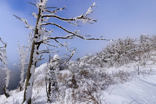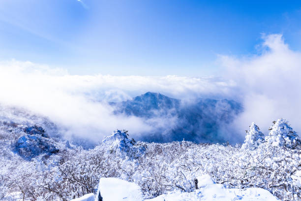 - 겨울: 눈이 소복이 쌓인 정상에서의 순백의 풍경.